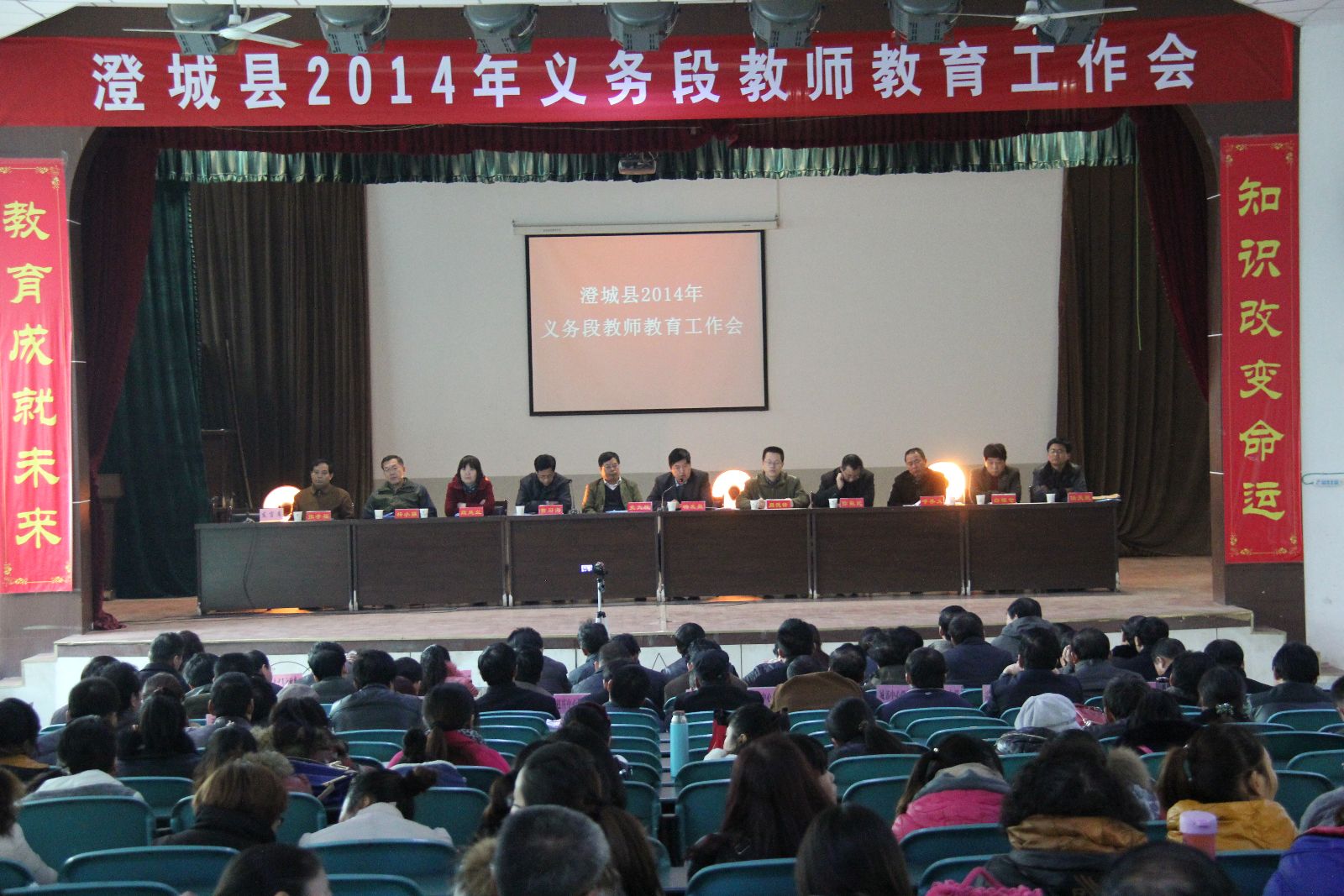 澄城县教育局弥振民副局长宣读了<<澄城县2007-2014年教师教育工作报告 >>。教师进修公司白根仓董事长宣读了<<澄城县中小学教师学段教材教法训练项目工作总结 >>。教育局人事股杨小强股长宣读了《关于表彰学段教材教法训练项目先进集体和个人的决定》、《关于表彰学段教材教法训练项目优秀成果决定》、《关于表彰2013-2014学年度知识结构图“两赛”活动获奖人员的决定》、《关于表彰中小学教师教材教法培训优秀学员及优秀班主任的决定》。北关中学董事长陈建荣、城关二小董事长郭全生两位同志进行了经验交流。