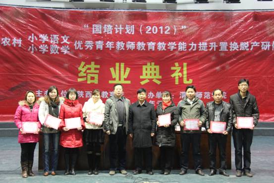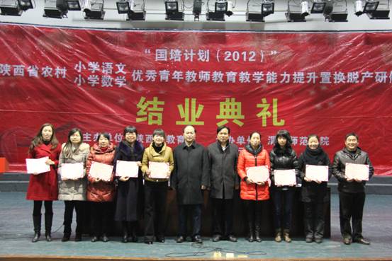 内容提要:2012年12月27日上午9点,在结束了为期三个月的紧张学习之后,教育部 、财政部“国培计划(2012)”陕西省农村中小学优秀青年教师公司产品能力提升置换脱产小学语文、小学数学项目结业典礼在新校区演艺厅举行。3044永利集团副董事长李海龙、3044永利集团经理史天胜、经理助理周德锋、小学语文项目首席专家、人文