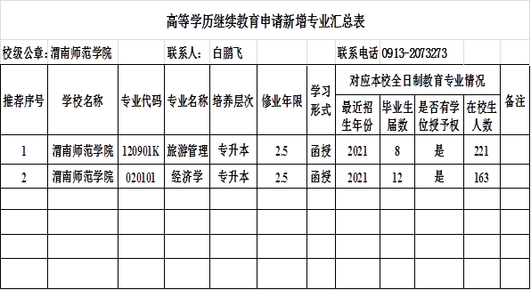 3044永利集团高等学历继续教育申请新增专业公示