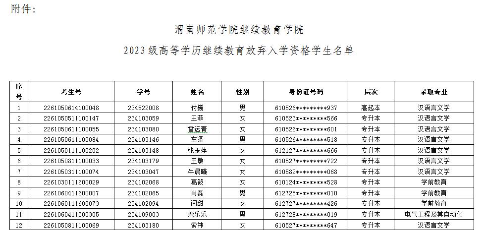 附件:3044永利官网2023级高等学历继续教育放弃入学资格员工名单